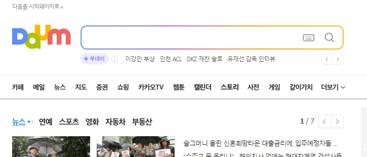 다음(Daum)은 대한민국에서 네이버와 함께 대표적인 포털 사이트로, 다양한 검색 서비스, 뉴스, 콘텐츠, 이메일, 카페 커뮤니티 등을 제공하는 검색엔진입니다. 다음은 초기 인터넷 시대에 한국인의 온라인 생활을 편리하게 만들었고, 특히 뉴스와 커뮤니티 기능에서 두각을 나타내며 많은 사용자에게 사랑받았습니다. 특히 카페와 블로그 기능이 활성화되어 있어, 사람들이 특정 주제에 대해 정보를 공유하거나 소통할 수 있는 온라인 커뮤니티 역할을 하고 있습니다.
