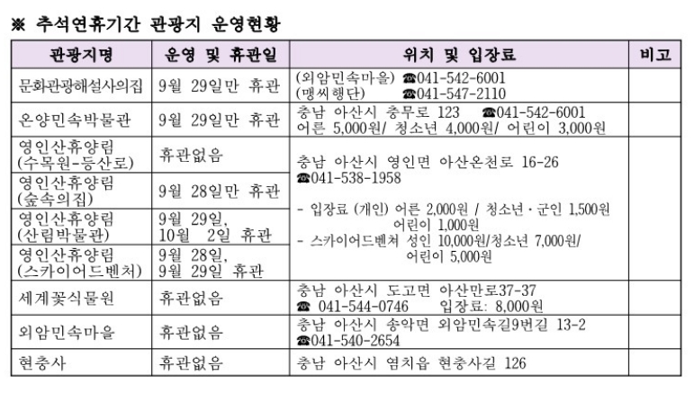 5. 관광지 운영 현황도 잘 정리되어 있습니다. 휴관 일정, 운영 시간 등을 확인할 수 있어, 방문 계획을 세울 때 매우 유용합니다. 특정 명소는 연휴에도 운영하지만, 휴관하는 날이 있는 곳도 있으니 미리 확인해두는 것이 좋습니다.
