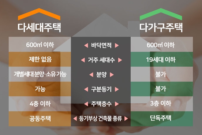 3. 바닥 면적이나 세대 수, 주택 층수, 등기 방식에서 차이를 보입니다. 예를 들어 다세대는 각각의 세대가 개별 등기를 할 수 있어 투자가 가능하지만, 다가구는 단일 소유주가 전체를 관리하게 됩니다.