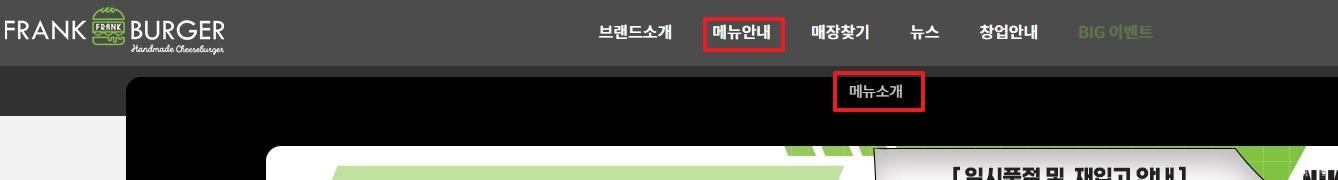 1. 프랭크버거 홈페이지로 접속합니다. 프랭크버거는 고급 소고기 패티와 신선한 재료를 사용하여 다양한 수제버거를 제공하는 프랜차이즈로, 합리적인 가격과 고품질 메뉴로 사랑받고 있습니다. 홈페이지에서는 매장 위치, 가맹점 문의, 그리고 상세한 메뉴 정보를 제공합니다.