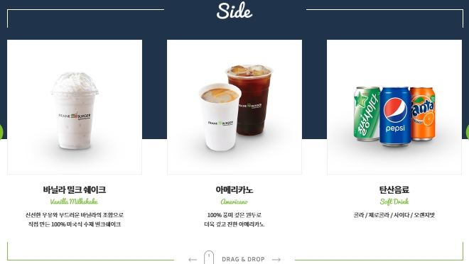 사이드 메뉴도 빠질 수 없죠. 프랭크버거의 감자튀김은 바삭하면서도 고소한 맛이 일품이고, 치즈스틱도 겉바속촉의 매력으로 버거와 함께 곁들이기에 좋아요. 음료로는 기본적인 탄산음료뿐만 아니라, 쉐이크를 선택하면 식사가 한층 더 풍성해져요.
