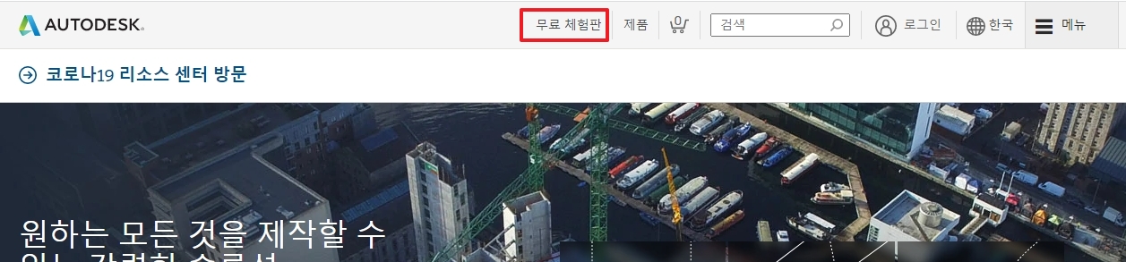 2. 상단 메뉴에서 무료 체험판 항목을 찾아 클릭하세요. 이 메뉴는 사용자가 무료로 이용할 수 있는 모든 오토데스크 도구에 대한 정보를 제공합니다. 여기에서 DWG 뷰어 옵션도 확인할 수 있습니다.