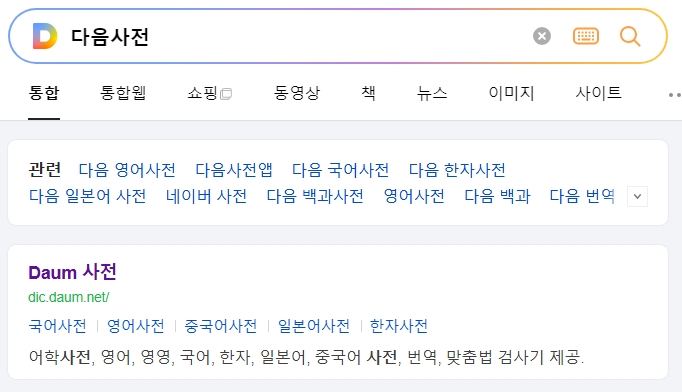 1. 다음사전 웹사이트에 접속합니다. 이곳에서 여러 한국어 단어 및 사자성어의 뜻과 설명을 확인할 수 있습니다.