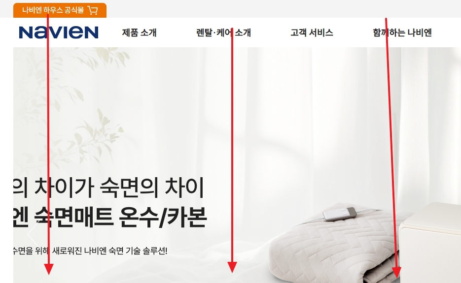 1. 경동나비엔 공식 홈페이지에 접속합니다. 인터넷 브라우저에서 경동나비엔을 검색하거나 주소창에 공식 홈페이지 주소를 입력하여 접속합니다. 홈페이지 메인 화면에서는 보일러, 온수기, 온수매트 등 다양한 제품군을 한눈에 확인할 수 있으며, 필요한 정보를 탐색하기 위한 주요 메뉴가 상단에 배치되어 있습니다.