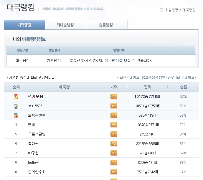 6. 게임에는 실시간 랭킹 시스템이 있어 자신의 기력과 순위를 확인할 수 있습니다. 최상위 랭커의 기록은 놀라울 정도로 방대한 전적을 자랑하며, 이는 게임의 열정과 역사를 느낄 수 있는 부분입니다.