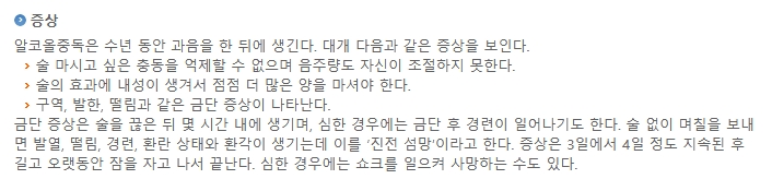 5. 치료 방법과 함께 금단 증상에 대한 관리 방법도 상세히 안내됩니다. 금단 증상은 알코올 중독에서 회복하는 과정에서 가장 큰 도전 중 하나로, 중독장애 클리닉 페이지에서는 금단 증상의 정의, 발생 시기, 주요 증상, 응급 치료 방안 등이 구체적으로 설명되어 있습니다. 이를 통해 환자와 가족은 금단 증상에 대한 적절한 대응 방법을 이해할 수 있습니다.
