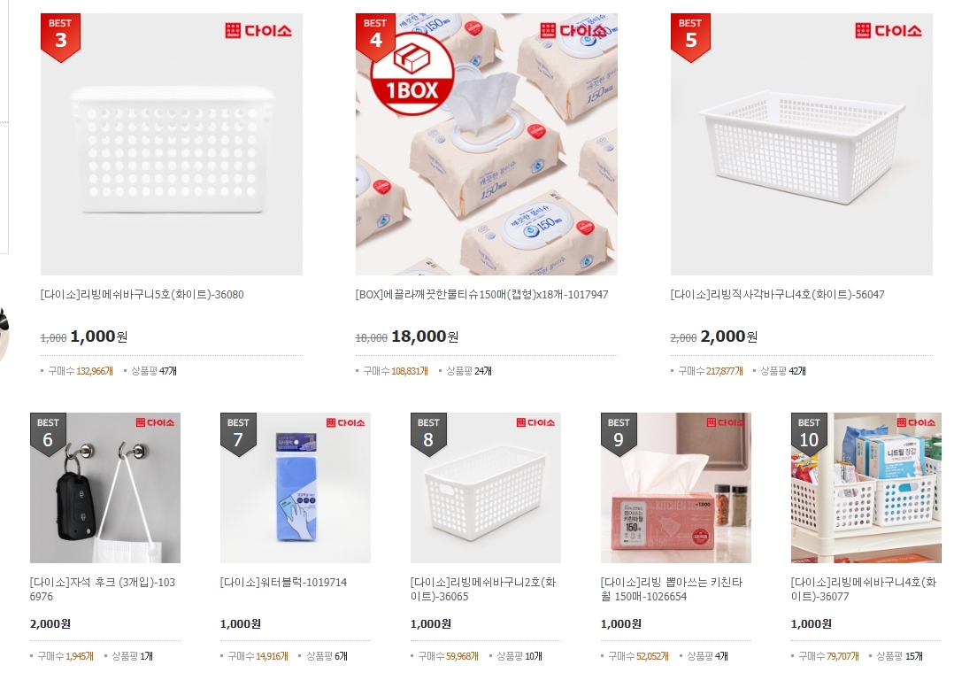 7. 베스트 100을 살펴보니 계절에 따라 판매량이 높은 제품이 다양합니다. 예를 들어, 여름철에는 방충망이나 모기 퇴치제, 겨울철에는 온열 제품이나 보온 용품이 높은 순위를 차지하는 경우가 많습니다. 의외로 실내 정리용 바구니, 물티슈, 자석 후크와 같은 생활용품이 항상 인기 순위에 올라 있는 것을 확인할 수 있습니다. 이러한 상품들은 사용 빈도가 높고 실용적이기 때문에 매장에서나 온라인에서 쉽게 찾을 수 있어 추천됩니다.