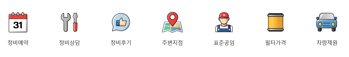 4. 정비 예약 및 상담 기능을 이용하여 원하는 시간에 정비 서비스를 예약합니다. 홈페이지에서는 정비 후기, 필터 가격 등 다양한 정보를 제공하며, 표준화된 공임비용으로 사용자가 예상 비용을 미리 확인할 수 있습니다. 특히 필터, 엔진오일 등 주요 소모품의 가격 정보를 투명하게 공개하여 정비 비용 부담을 줄이고 있습니다.