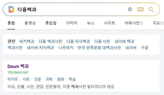 1. 다음백과 홈페이지에 접속합니다. 이곳은 이슈, 인물, 사건, 연감, 전문용어 등을 포괄적으로 제공하는 온라인 백과사전 플랫폼입니다. 다양한 주제와 상세한 정보를 한곳에서 확인할 수 있어 학습이나 개념 정리에 유용합니다. 특히 법률이나 가족 관계와 같은 전문 분야의 용어를 쉽게 이해할 수 있도록 설명과 함께 예시를 제공합니다.
