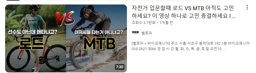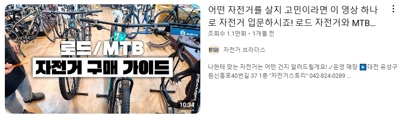 5. 자전거 입문할 때 로드 VS MTB 아직도 고민하세요?라는 제목의 영상은 로드와 MTB 자전거를 비교하면서 각각의 장단점과 라이딩 스타일에 따른 추천 모델을 소개합니다. 이 영상은 초보자에게 특히 유익하며, 실제 주행 장면과 자전거의 특징을 시각적으로 보여줍니다.