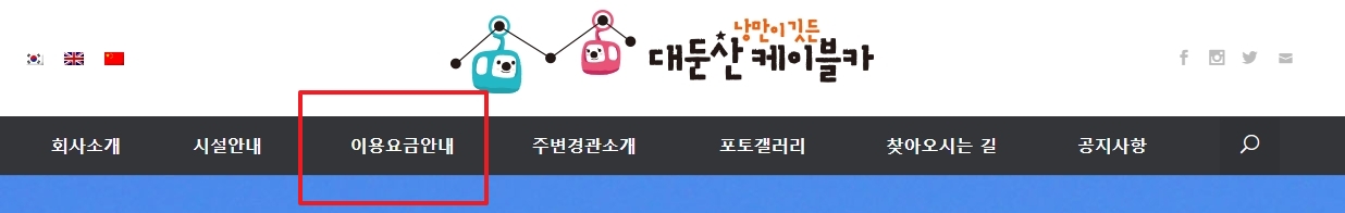 홈페이지 상단의 메뉴에서 이용요금안내를 클릭하면, 요금과 할인 정보를 제공하는 페이지로 이동합니다.