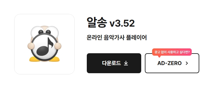 3. 알송 다운로드 페이지에 접속하면 알송 v3.52라는 최신 버전을 확인할 수 있습니다. 이 버전은 온라인 음악 가사 플레이어로 실시간 가사 제공과 여러 추가 기능을 포함하고 있습니다.
