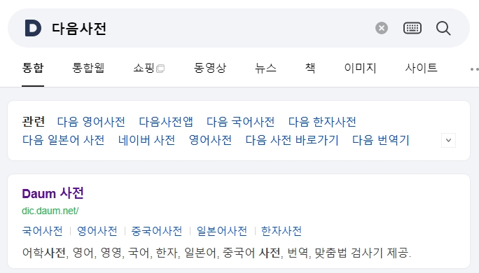 1. 다음사전에 접속하면 어학사전, 영어, 영영, 국어, 한자, 일본어, 중국어 사전 등 다양한 사전 기능과 번역, 맞춤법 검사기 등 유용한 언어 관련 서비스를 이용할 수 있습니다.