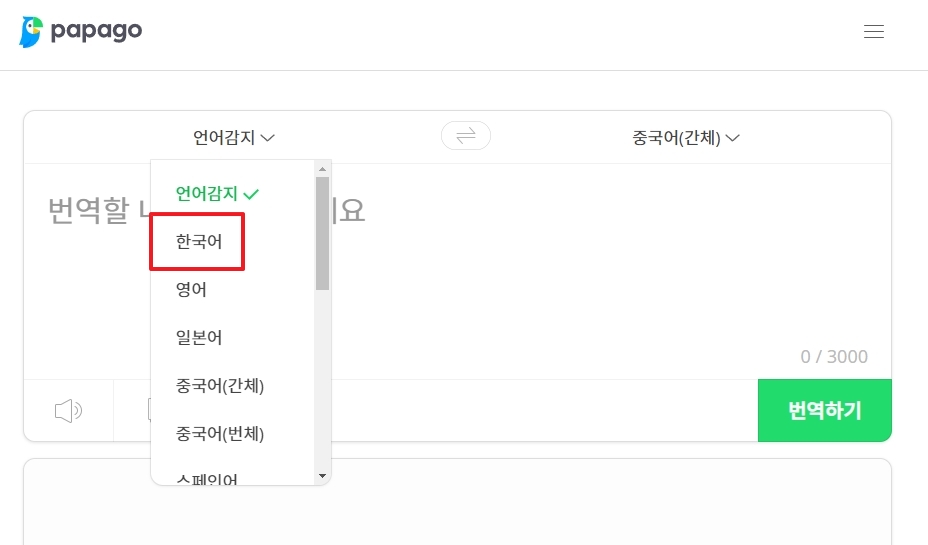 번역기 사용 시 왼쪽의 입력 언어를 언어 감지로 설정할 수도 있지만, 보다 정확한 번역을 위해 한국어로 직접 설정하는 것이 좋습니다. 이렇게 하면 번역의 정확도를 높일 수 있습니다.