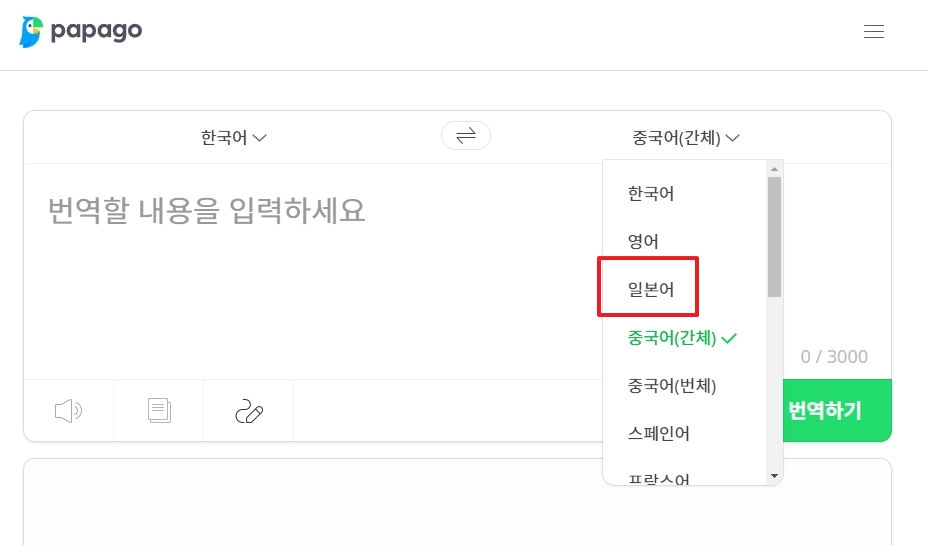 번역하고자 하는 대상 언어는 오른쪽에서 일본어로 설정해야 합니다. 이렇게 설정하면 한국어에서 일본어로 원활하게 번역할 수 있습니다.