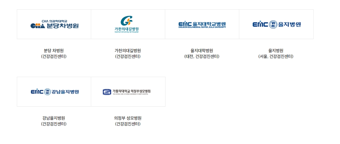 마지막으로 건강검진 부분에서는 분당 차병원(건강검진센터), 가천의대길병원(건강검진센터), 을지대학병원(대전, 건강검진센터), 을지병원(서울, 건강검진센터), 강남을지병원(건강검진센터), 의정부 성모병원(건강검진센터)에서 사용할 수 있습니다.