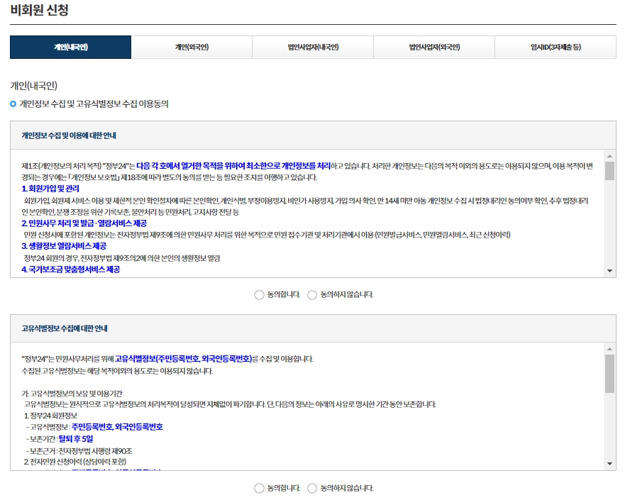 5. ‘신고하기’ 버튼을 눌러 본격적으로 신청을 시작합니다. 비회원으로도 진행할 수 있지만, 공동 인증서나 간편 인증이 필요할 수 있어요. 그리고 약관 동의, 정보 입력 같은 절차들이 있으니 차근차근 따라가시면 어렵지 않게 완료할 수 있습니다.