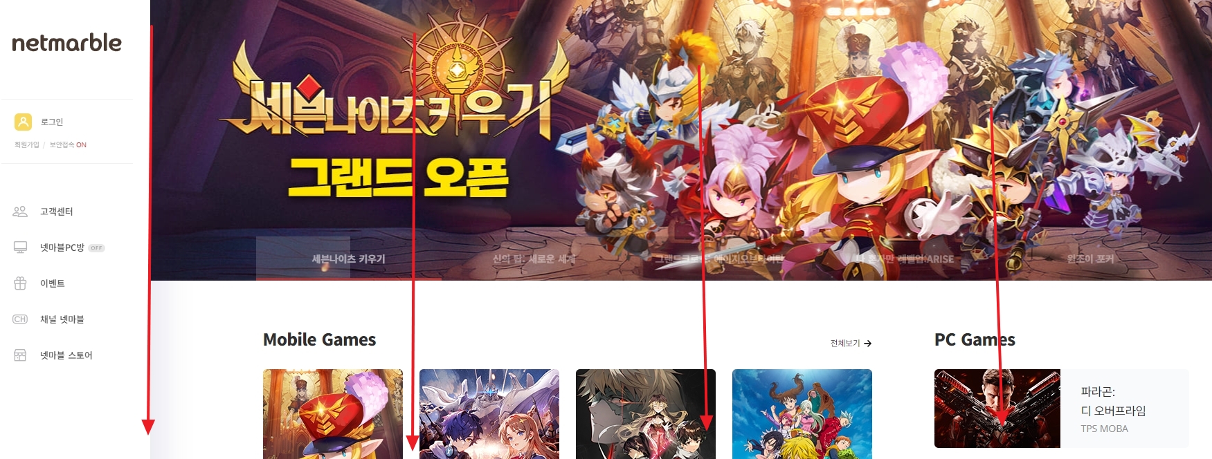 1. 넷마블 공식 홈페이지에 들어가 보세요. 이곳은 예전부터 보드게임이나 캐주얼 게임들로 유명했는데요, 틀린그림찾기 게임도 이 안에서 제공되고 있습니다. 회원 가입이 되어 있다면 바로 이용할 수 있고, 가입하지 않으셨더라도 구경 삼아 둘러보기에 좋아요. 다양한 게임들을 한눈에 볼 수 있게 잘 구성되어 있어 편리합니다.