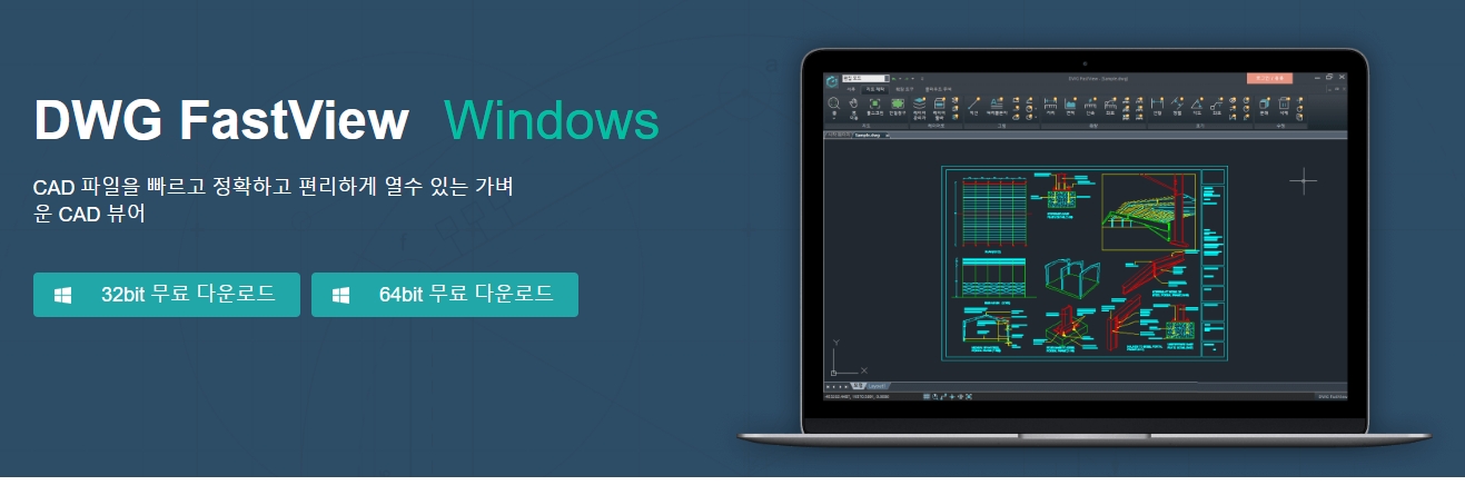 2. 웹페이지 상단 메뉴에서 사용 환경에 맞는 항목을 선택하면 됩니다. 예를 들어 PC에서 쓰시려면 윈도우용 DWG FastView 항목을 누르고 다운로드 버튼을 클릭해 주세요. 모바일이나 태블릿을 쓰신다면 각각의 앱스토어에서 설치하셔도 됩니다. 간편하게 DWG 파일을 확인할 수 있는 방법이라 활용도가 높아요.