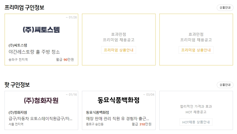 교차로 구인구직 홈페이지 (www.icross.co.kr)