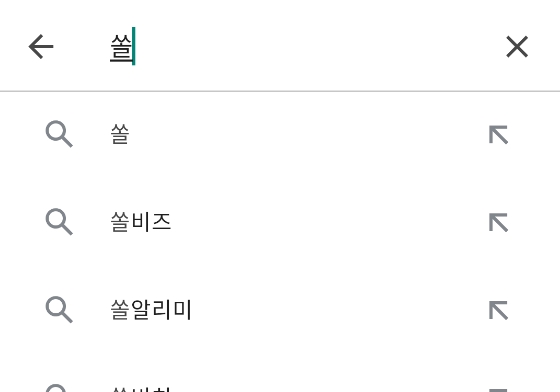 2. 상단 검색창을 터치한 뒤, ‘쏠’ 또는 ‘신한 쏠’이라고 입력해보세요. 입력이 끝나면 아래에 추천 앱 목록이 뜨는데 여기서 원하는 앱을 찾는 게 어렵지 않답니다.