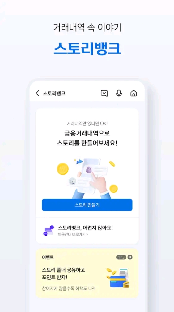 9. 마지막으로 ‘스토리뱅크’라는 메뉴도 흥미로워요. 내 소비 내역을 바탕으로 통계처럼 보여주는 형식인데, 숫자로만 보는 것보다 더 눈에 잘 들어오고 이해도 쉬운 것 같아요.