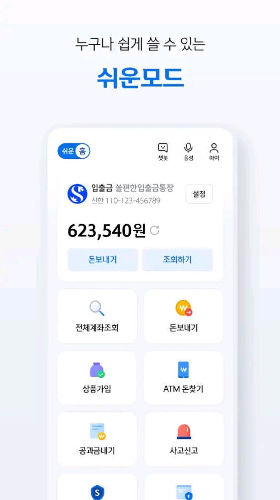 5. 앱 내에는 자주 쓰는 기능만 골라서 볼 수 있는 쉬운모드도 있어서 처음 쓰시는 분들도 훨씬 수월하게 이용하실 수 있어요. 어르신분들께도 추천할 만한 기능이에요.