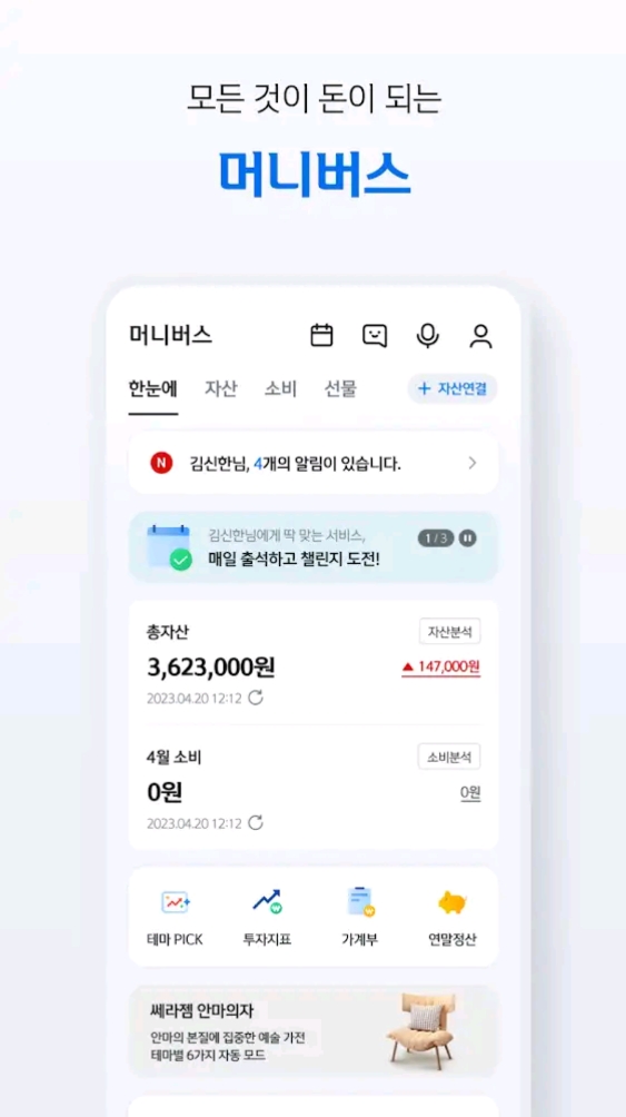 7. 머니버스 기능은 전체 금융 상황을 한 화면에 보여주는 기능인데요, 자산 관리에 관심 있으신 분들께는 정말 유용할 수 있어요. 저처럼 이 기능은 안 써봤어도 한 번쯤 눌러볼만하죠.