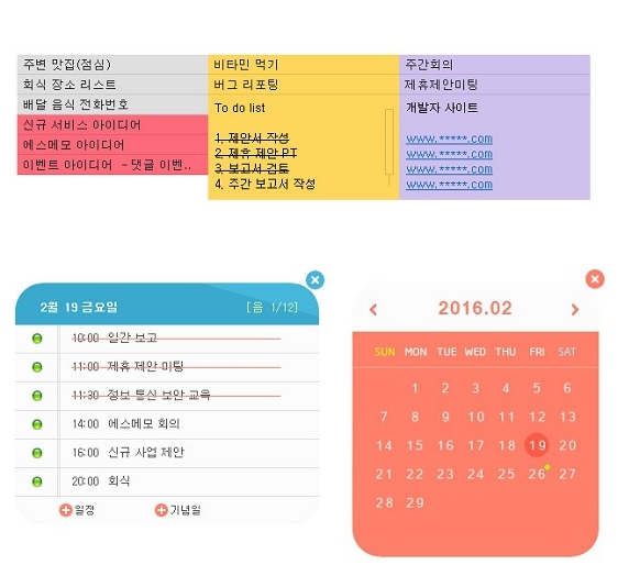 4. 위젯 기능도 제공되는데요, 시계나 날씨, 달력 같은 것들을 바탕화면에 함께 띄워둘 수 있어요. 자동 백업 기능 덕분에 작성한 메모가 갑자기 사라질 걱정도 줄어들죠. 그 외에도 색상 추출, 예약 종료 같은 부가 기능이 있어요.