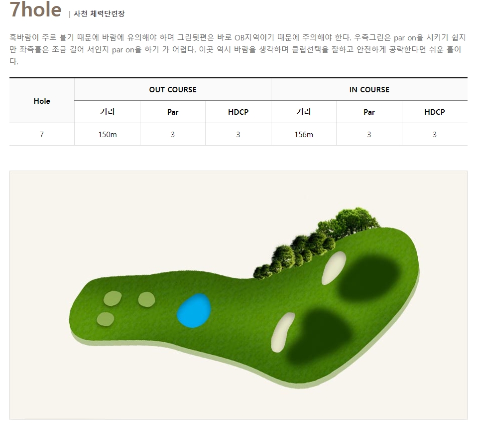 6. 또 7번 홀은 150m 거리의 파 3인데, 그린 뒤가 바로 OB 구역이라 긴장감 있게 플레이해야겠다는 생각이 들었어요.