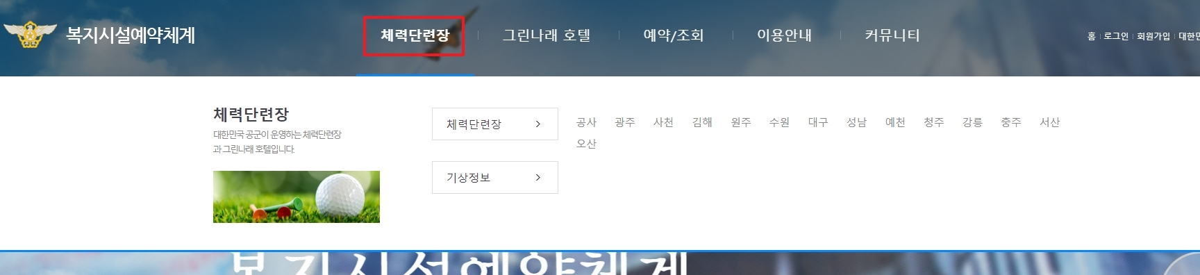 1. 공군 복지시설 예약 사이트에 들어가면 체력단련장을 포함한 다양한 복지 시설 정보를 확인할 수 있습니다. 사이트가 정돈돼 있어 처음 방문해도 필요한 메뉴를 찾기 어렵지 않았어요.