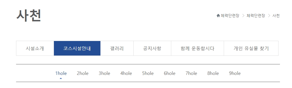 3. 사천 체력단련장 페이지에서는 시설 소개부터 코스, 공지사항, 프로그램 정보까지 다양하게 정리되어 있어 이용 전 참고하기 좋았습니다.