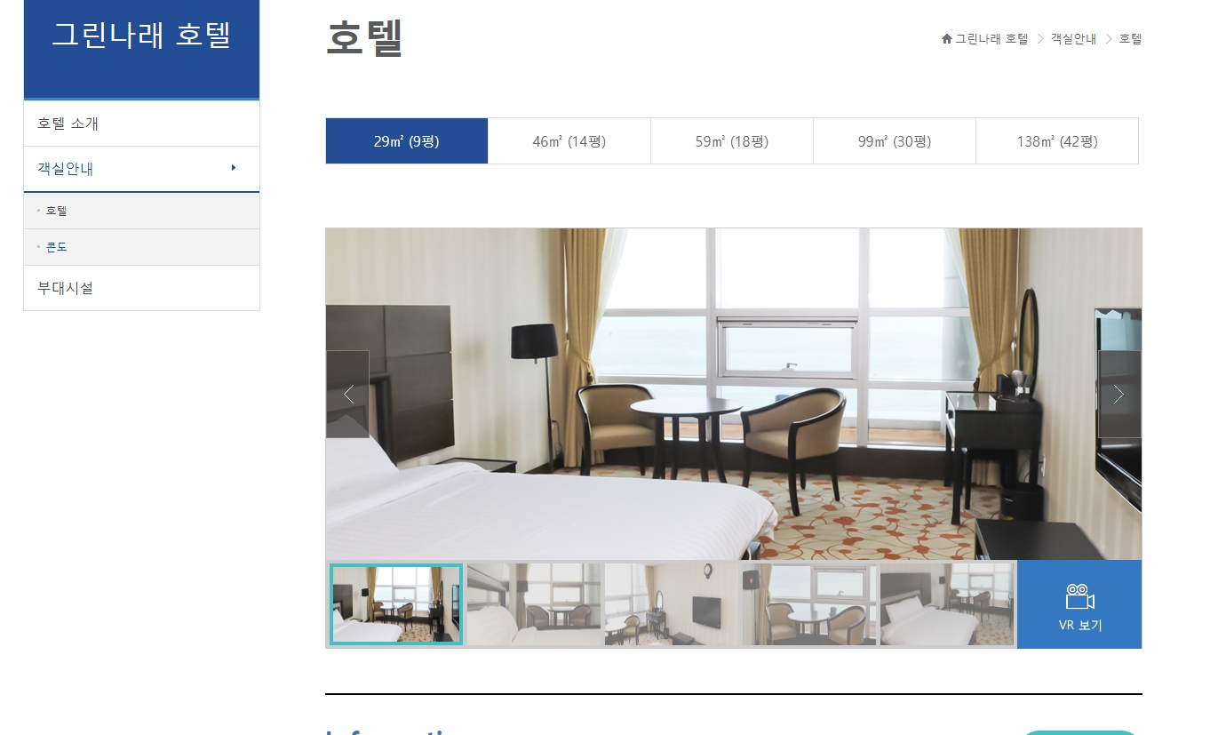 10. 객실 중 가장 큰 42평형을 클릭해서 확인해 봤는데, 내부 인테리어가 꽤 고급스럽고 넓어서 가족 단위 방문객에게도 잘 맞을 것 같았습니다.