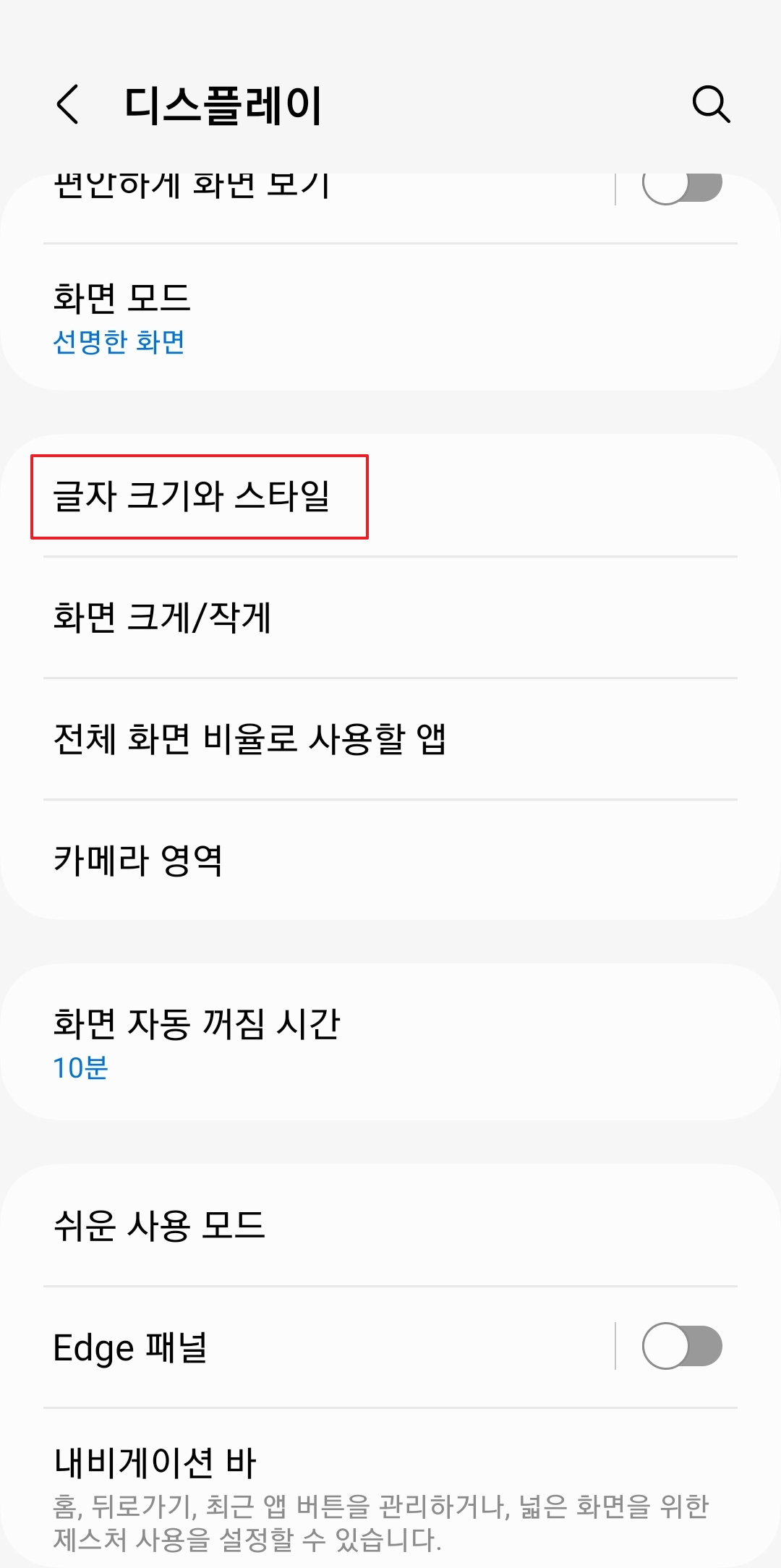 설정 메뉴 안에서도 '디스플레이' 항목으로 이동해야 합니다. 이곳에서 화면 밝기, 다크 모드와 함께 글씨 크기 조정 기능도 찾을 수 있습니다.