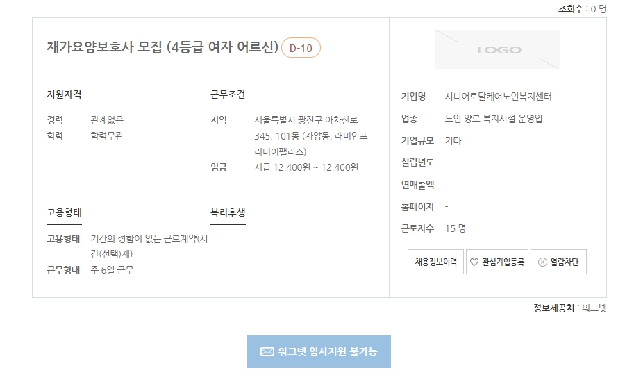 각 일자리 상세 페이지에는 임금, 근무 시간, 근무지 정보 등이 구체적으로 안내되어 있습니다. 동일한 요양보호사 일이라도 시급에 차이가 크기 때문에 주의 깊게 살펴보고, 시급이 높은 조건부터 우선적으로 검토하는 것이 좋습니다.