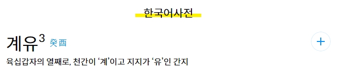 ‘계유’라는 간지를 클릭하면 천간(계)과 지지(유)의 조합 의미가 설명됩니다. 육십갑자 중 열 번째 조합으로 소개되며, 초보자도 이해할 수 있도록 해석을 제공합니다.