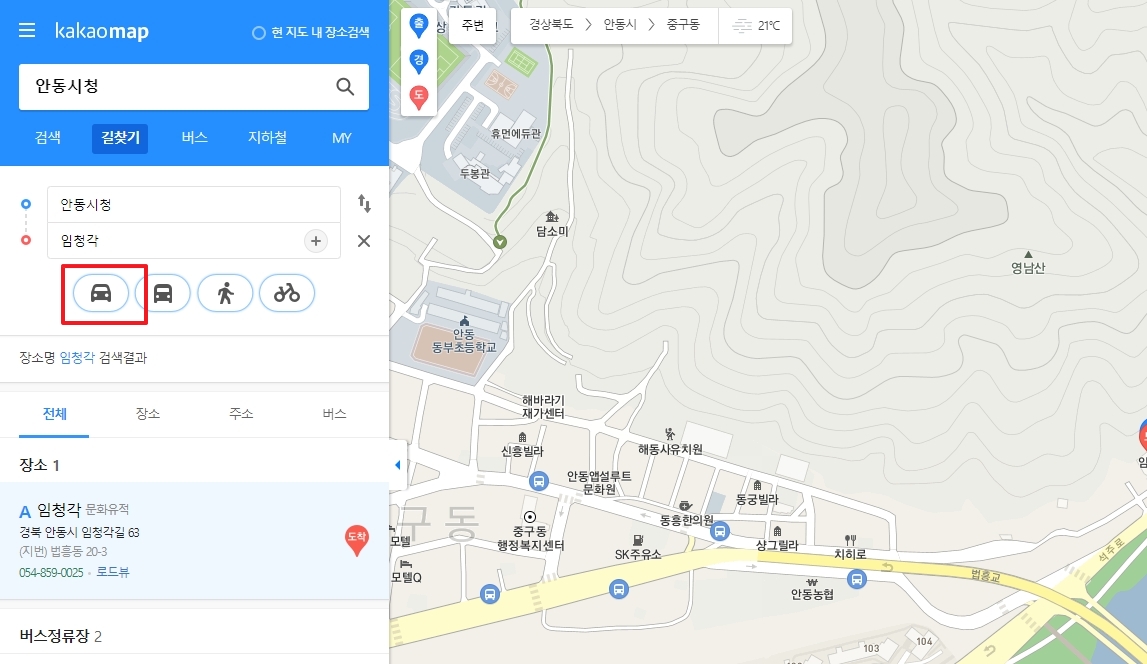 출발지를 입력한 뒤 길찾기 버튼을 클릭하면 도착지까지의 예상 택시 요금이 표시됩니다. 다만, 교통량이 많으면 요금 예측 시간이 다소 길어질 수 있습니다.