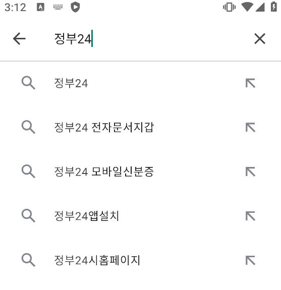 상단 검색창에 ‘정부24’라고 입력한 후 검색하면 공식 앱이 가장 위에 나타납니다. 아이콘과 이름을 꼭 확인하고 클릭하세요.