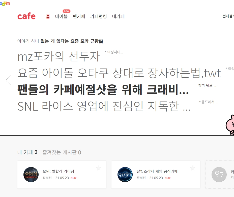 내가 가입한 카페 목록에서 원하는 카페를 클릭하면 해당 카페로 이동할 수 있습니다.