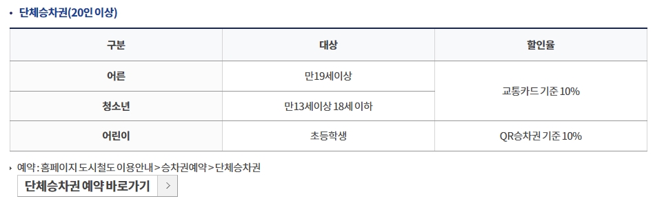 6. 단체승차권은 20인 이상인 경우 기본 요금에서 10% 할인되며, 청소년과 어린이도 동일 비율 할인이 적용됩니다. 예약은 부산교통공사 홈페이지 단체 예약 메뉴에서 사전 진행할 수 있어 단체 이동 시 편리합니다. 예를 들어 25명이 함께 이용할 경우 성인 기본 운임 1,600원은 할인 후 1,440원에 이용 가능합니다.
