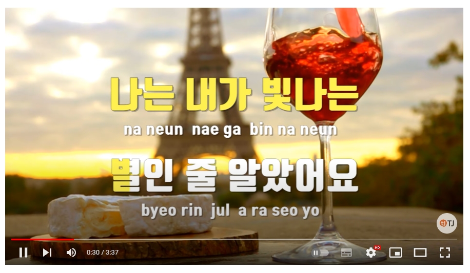 6. 실제 유튜브 반주 영상은 노래방 기기 화면과 완전히 동일한 구성을 보여줍니다. 집에서도 실제 노래방 같은 분위기로 연습할 수 있어, 처음 이용하는 분들도 편안하게 화면에 익숙해질 수 있습니다.