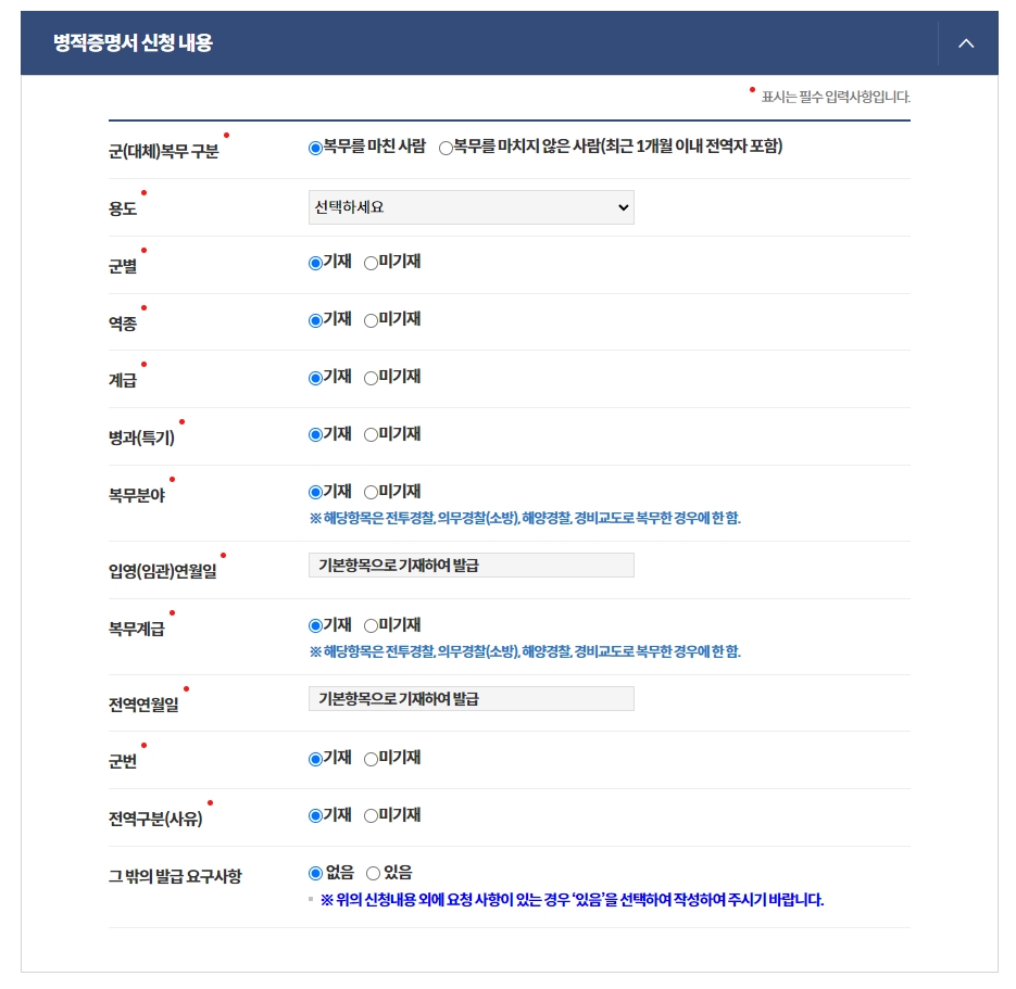 복무 구분을 설정하고 추가 정보도 정확하게 입력해야 증명서가 올바르게 발급됩니다. 용도에 맞게 선택하는 것이 중요합니다.