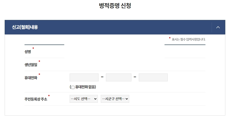 개인정보 입력 단계에서는 성명, 생년월일, 연락처, 주소 등 기본 정보를 작성하면 됩니다. 이 정보는 병적 사항과 일치해야 합니다.