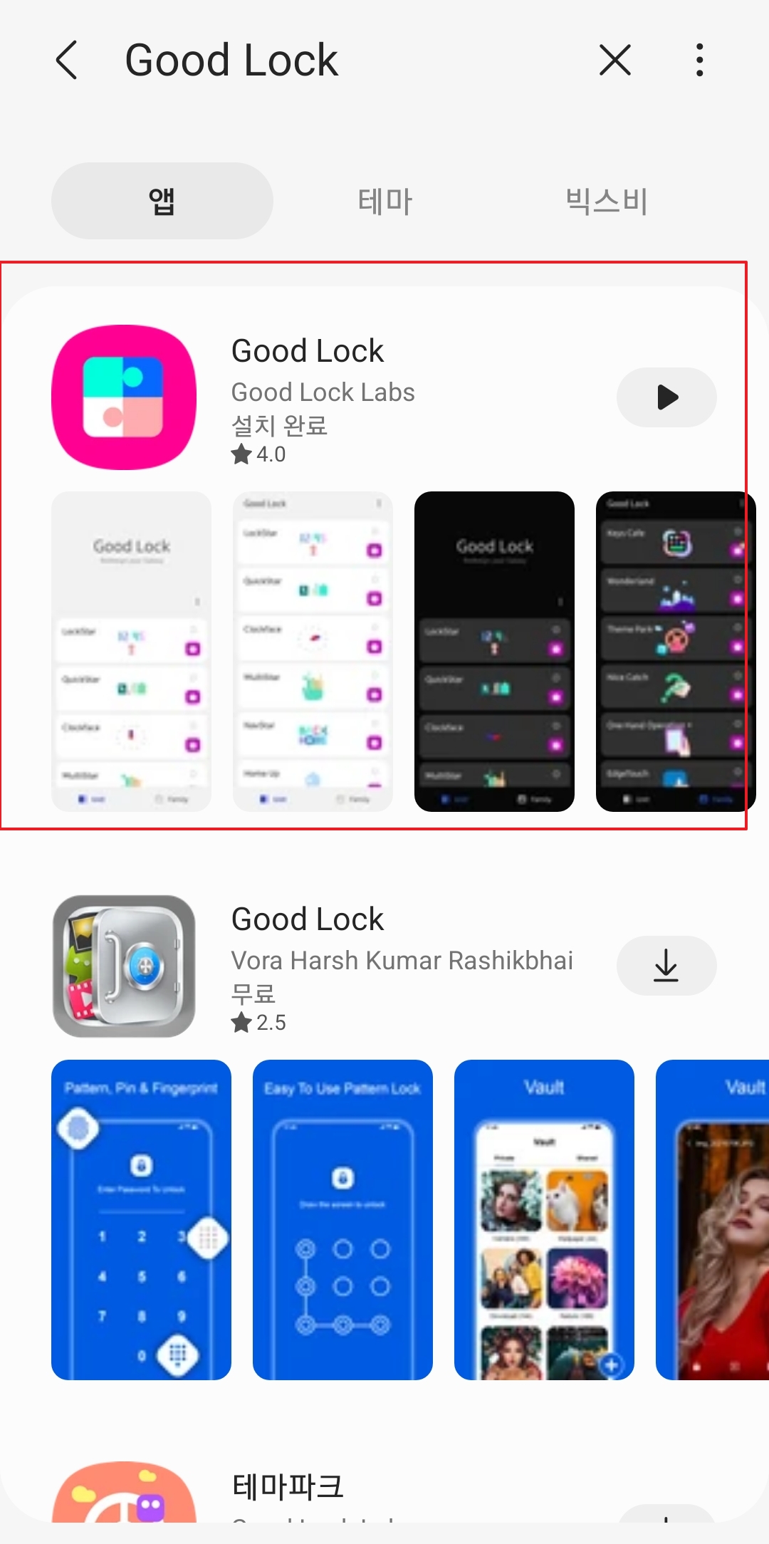 Good Lock 앱 설치가 완료되면 '열기' 버튼을 눌러 앱을 실행합니다. 처음 실행 시 권한 요청 화면이 나타날 수 있으므로 허용을 선택하고, 홈 화면에서 Good Lock 메인 화면으로 진입해 '갤럭시 꾸미기' 메뉴가 표시되는지 확인합니다.
