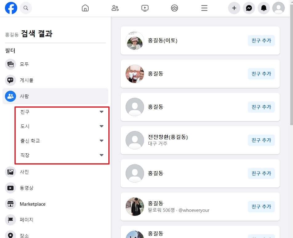 페이스북 사람찾기