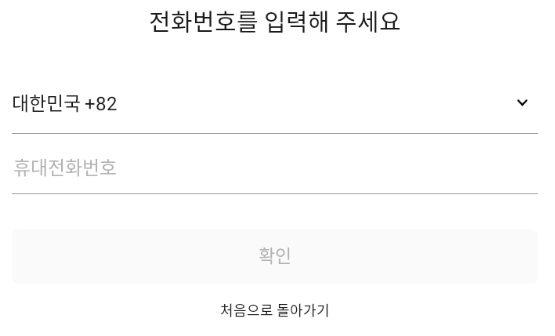 6. 본인 확인을 위해 휴대폰 번호를 입력하는 화면입니다. 올바른 번호를 입력해야 다음 단계에서 인증번호를 받을 수 있습니다.