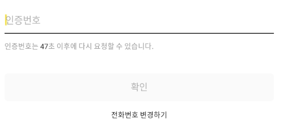 7. 입력한 번호로 발송된 인증번호를 60초 이내에 입력해야 합니다. 키패드와 남은 시간이 함께 표시되어 시간을 놓치지 않도록 안내합니다.