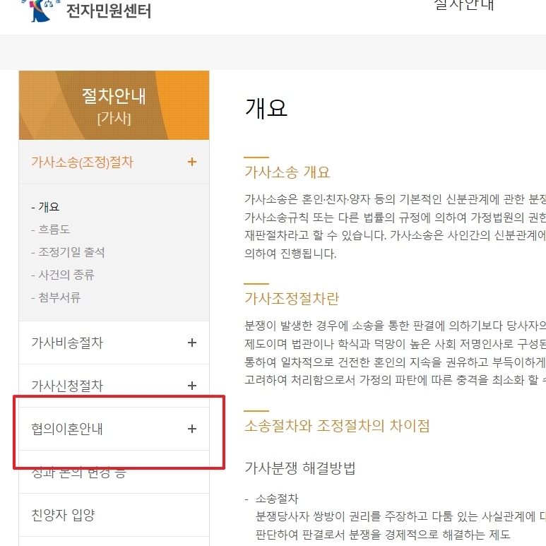 홈페이지에 성공적으로 들어왔다면, 화면 위쪽에 있는 여러 메뉴 중에서 '절차안내'라는 글씨를 찾아서 눌러주세요. 그 다음으로는 '가사'라는 항목을 선택하면 된답니다. 화면이 바뀌면 왼쪽 편에 '합의이혼안내'라는 메뉴가 보일 거예요. 바로 이 메뉴를 클릭하면 우리가 그렇게 찾던 합의이혼 절차와 준비해야 할 서류 목록이 아주 자세하게 설명되어 있어요. 생각보다 쉽죠?