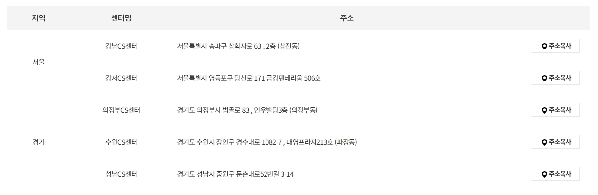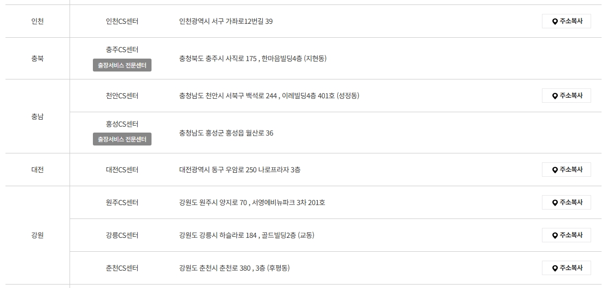 어떤 서비스센터는 직접 찾아가는 곳이 아니라, 기술자 아저씨가 우리 집으로 직접 와서 고쳐주는 출장 서비스만 전문으로 하는 곳도 있어요. 충주나 목포에 있는 CS센터 같은 곳들이 그런데요, 이런 곳은 직접 물건을 들고 찾아가면 안 되고 꼭 전화로 먼저 상담하고 약속을 잡아야 해요.