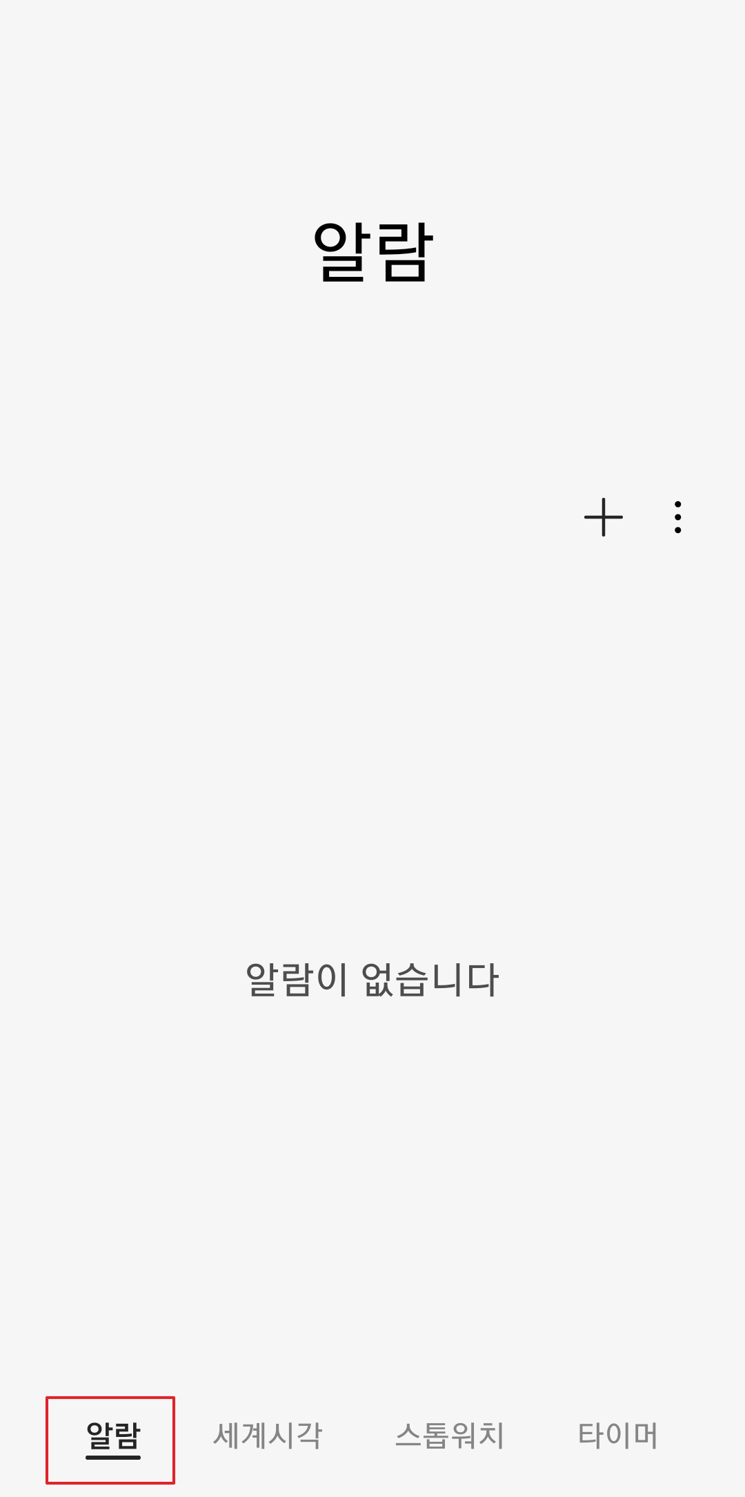 시계 어플로 들어왔다면 이제 새로운 알람을 만들어야겠죠. 화면을 잘 살펴보면 오른쪽 위에 더하기(+) 모양 버튼이 보일텐데요, 이걸 눌러주면 된답니다. 이 버튼이 바로 새로운 알람을 추가하는 버튼이에요.